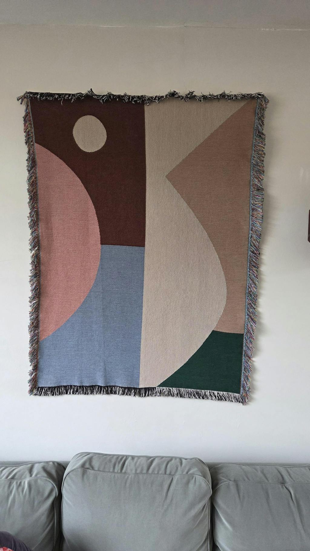 Het wandkleed trekt meteen de aandacht. De stof is stevig en voelt natuurlijk aan, terwijl de kleuren de ruimte een warme, gezellige sfeer geven. Dankzij de houten lat was het eenvoudig op te hangen, en het hangt mooi strak tegen de muur. Mega aanrader!