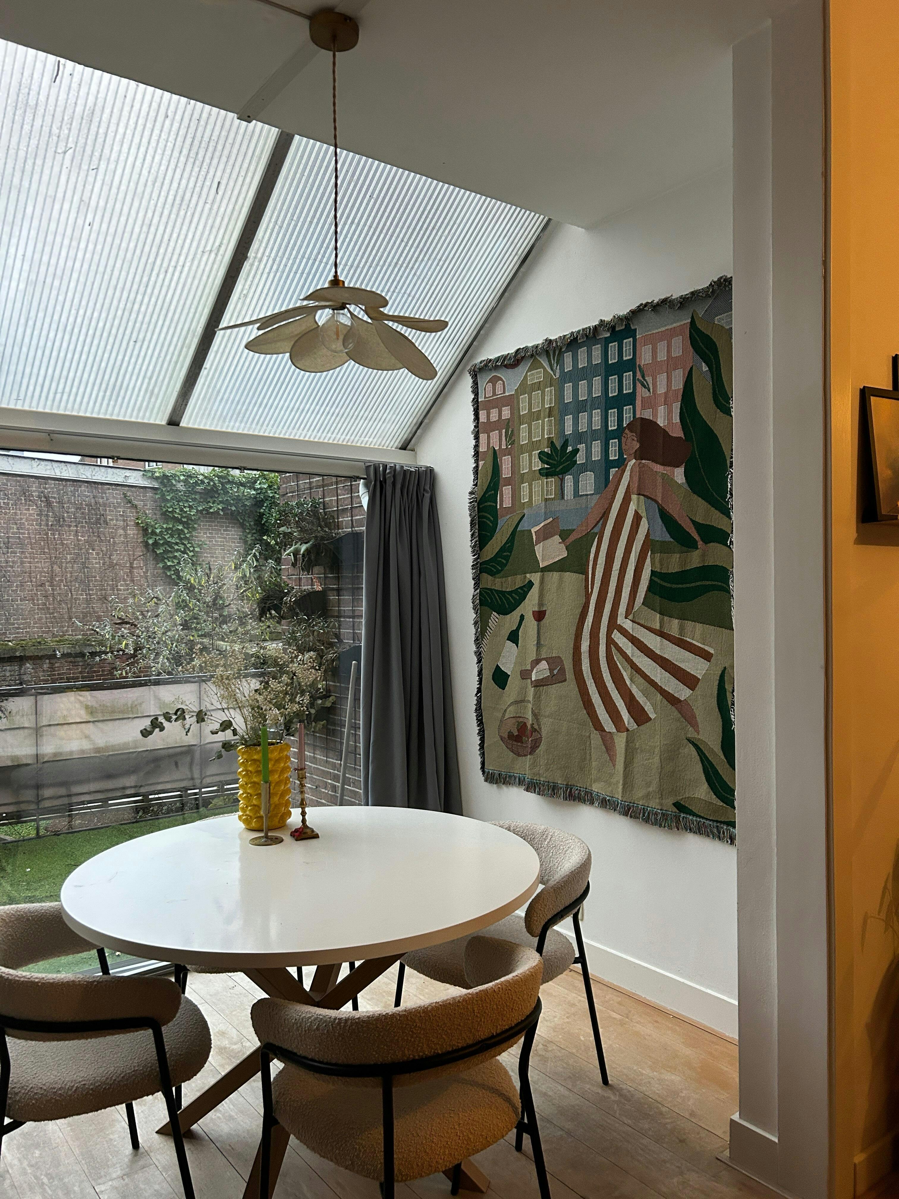 Met dit wandkleed haal je het gevoel van buiten naar binnen. Alsof je een rustige, fijne middag in het park een plekje aan je muur geeft. Geen meldingen, geen verplichtingen - gewoon lekker in je eigen bubbel. Voor iedereen die z’n interieur net zo relaxed wil laten aanvoelen.
